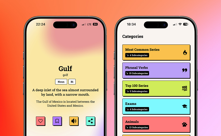 An English vocabulary learning app featuring 20,000 curated words with smart repetition and progress tracking.