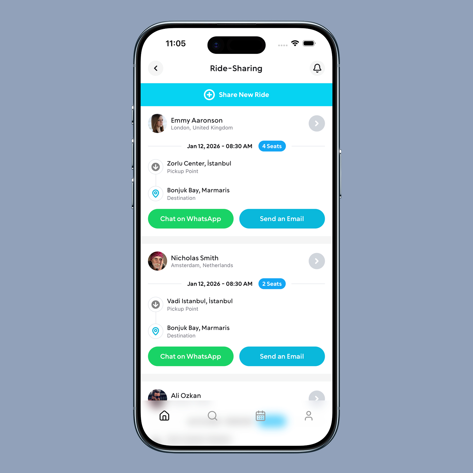 Members can create or join rides, match similar routes, and coordinate travel—making arrivals easier and more social.