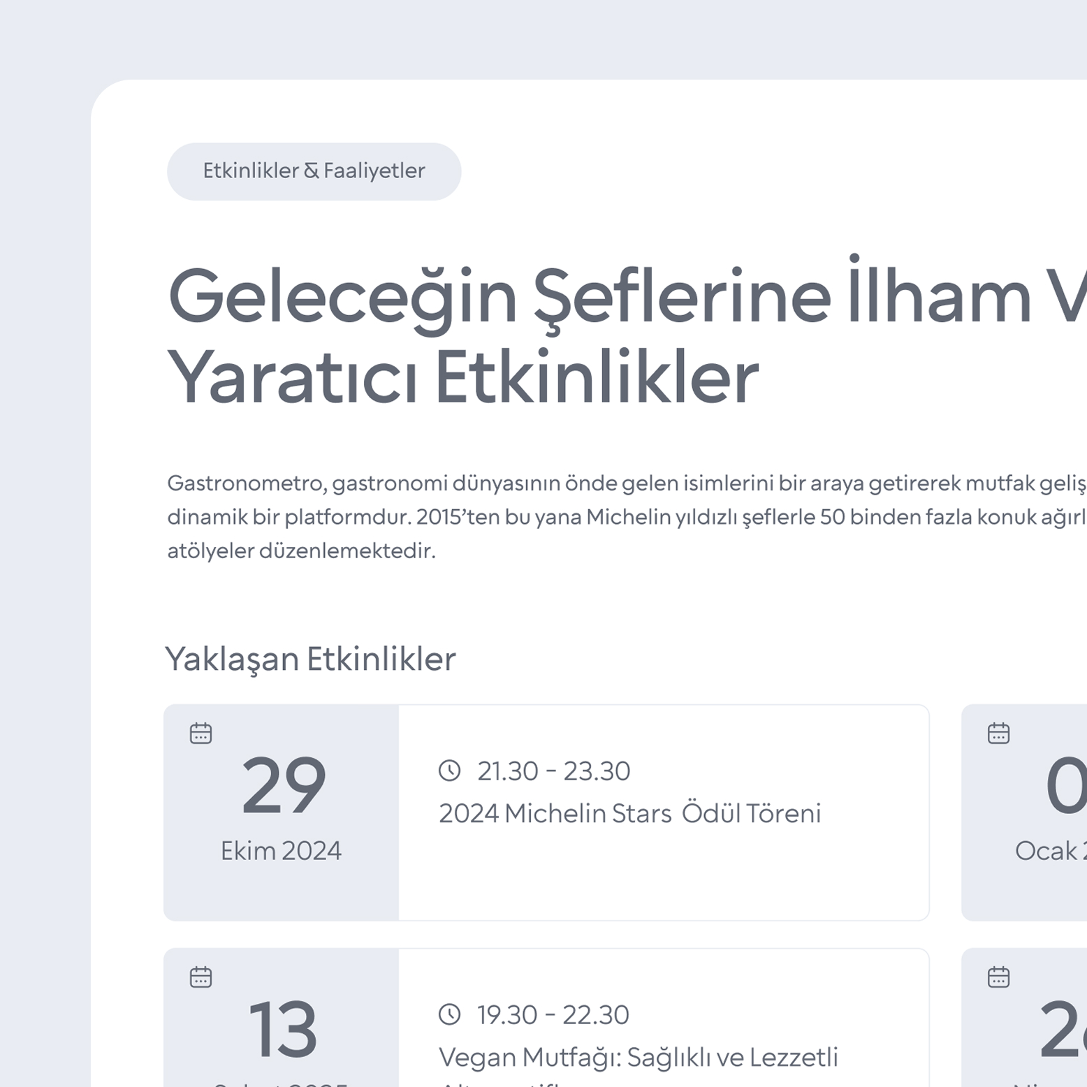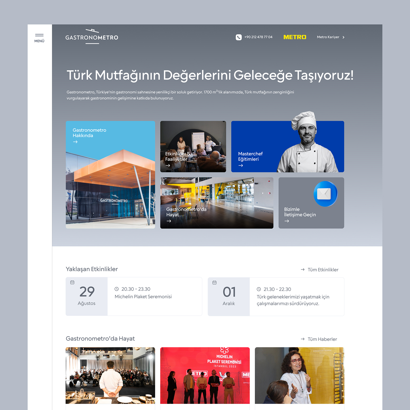 Gastronometro’s gastronomy platform Gastronometro partnered with us to redesign and rebuild its website for its 10th anniversary. The project focused on creating a modern, brand-driven frontend experience supported by a custom backend. The new website was designed to strengthen brand positioning, showcase culinary content, and serve as a central digital touchpoint for chefs, partners, and the gastronomy community in Turkey.