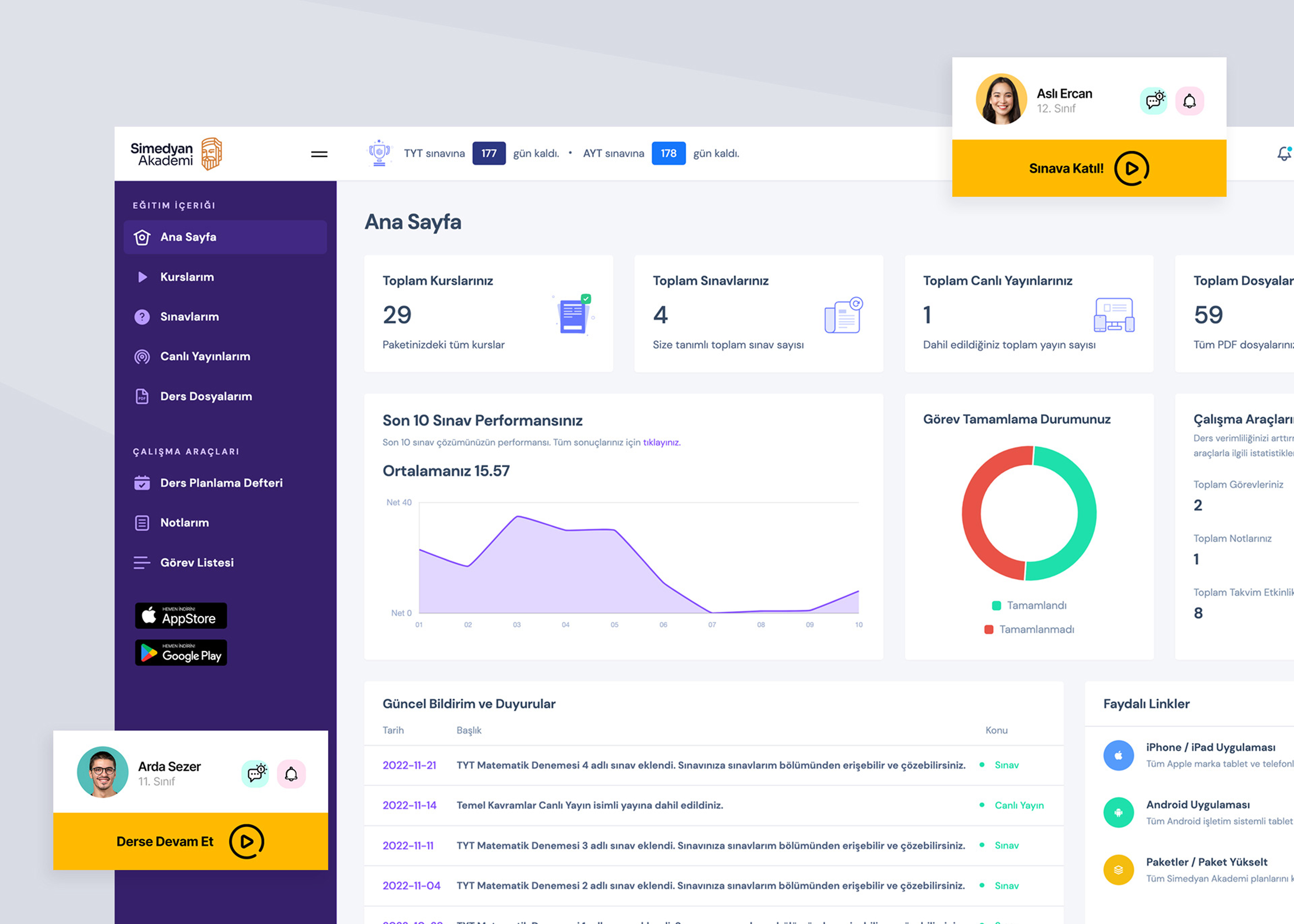 Simedyan Akademi required a unified platform that could support both asynchronous learning and real-time education workflows, while also presenting a strong brand and a conversion-ready public website. The system needed to cover core LMS needs—courses, exams, live sessions, messaging, and content organization—without feeling fragmented across tools. In addition, payments and subscriptions had to be seamlessly integrated to support sustainable monetization and frictionless access across web and mobile.
