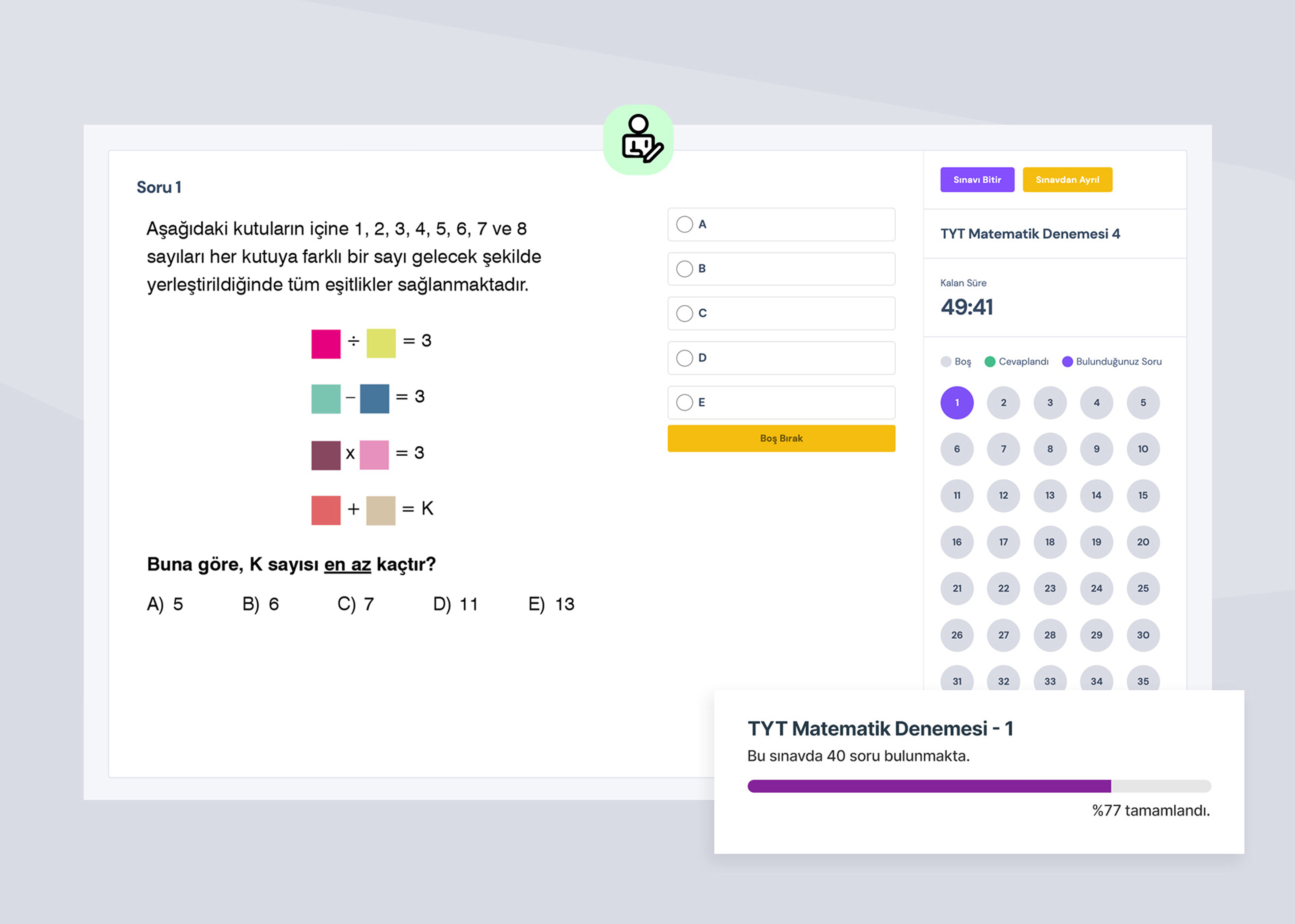 A dedicated exams module enabling students to take online tests with clear organization and a focused exam-taking experience.