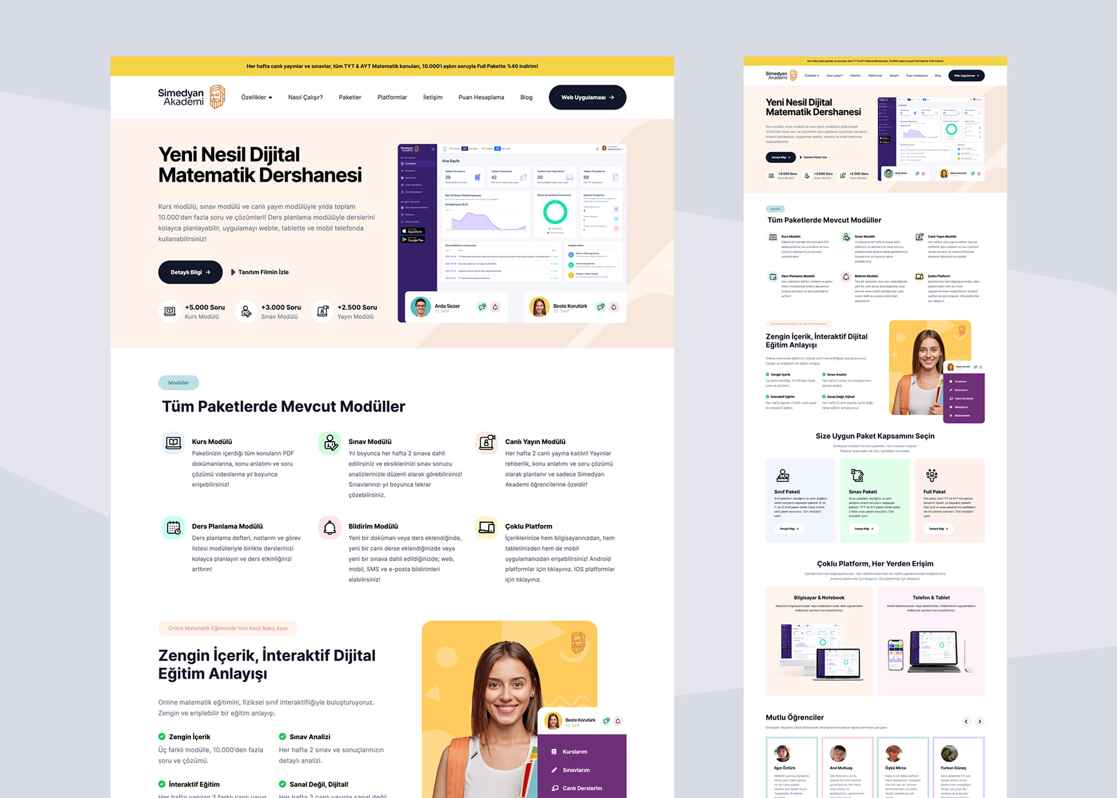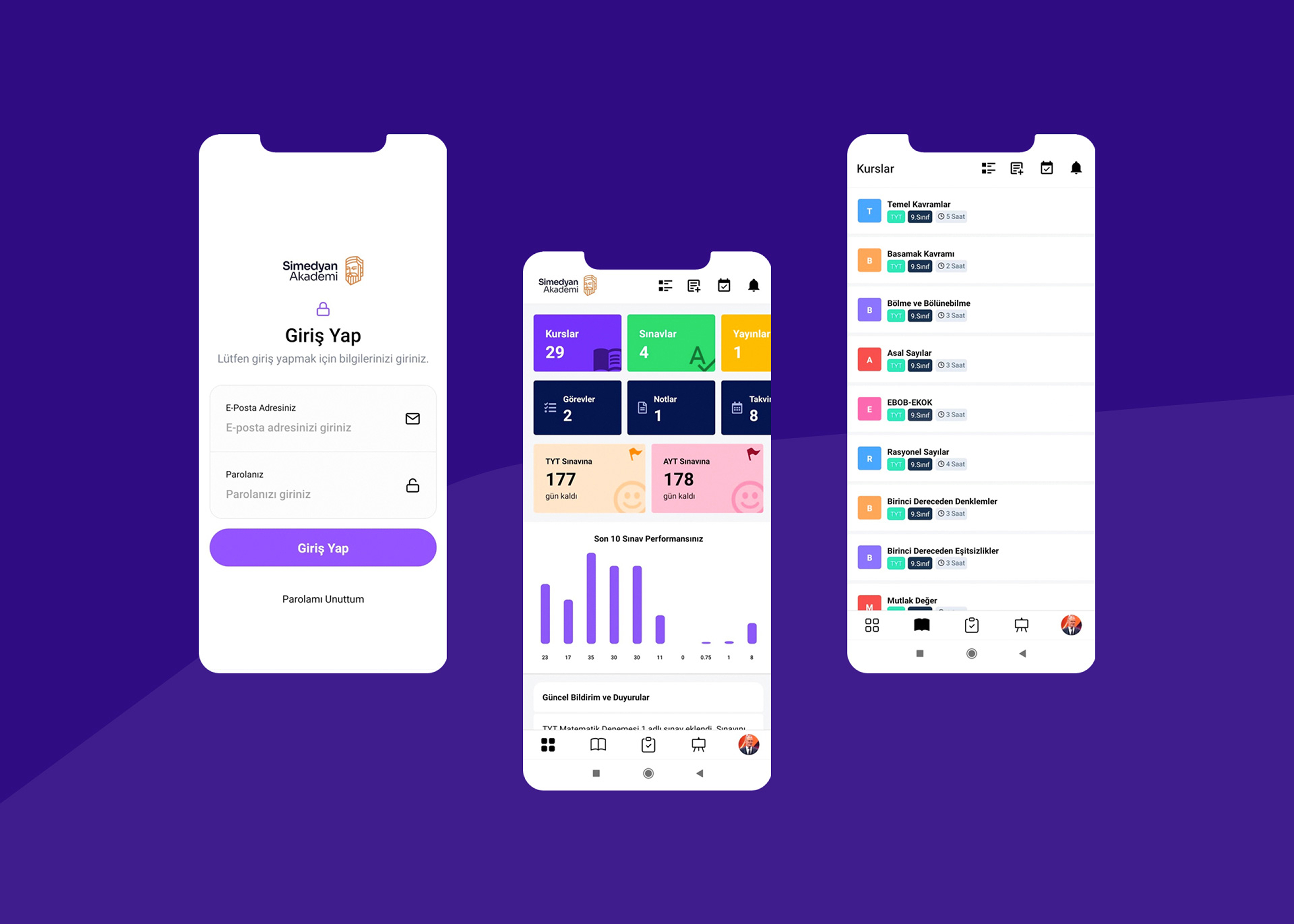 A full-scale LMS platform for Simedyan Akademi, including branding, landing site, web-based learning system, and iOS & Android student apps with subscriptions.