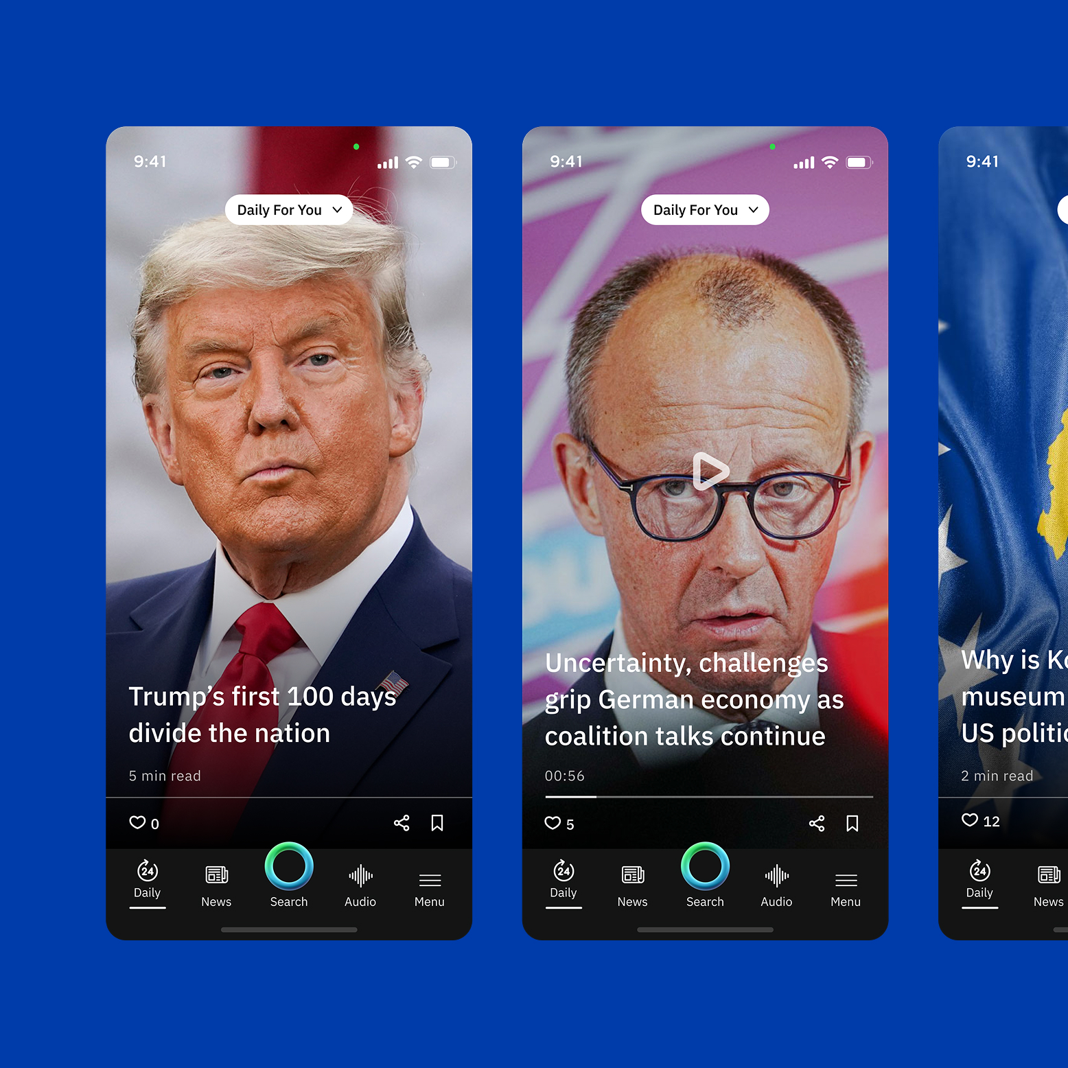 A global news app must feel fast, credible, and effortless to use—especially for a national broadcaster’s international brand. The challenge was to design an experience that improves content discovery across high-volume news, programs, and formats, while making live broadcast access feel natural and prominent. The interface had to balance strong editorial hierarchy with a modern visual system that communicates trust and quality at first glance.